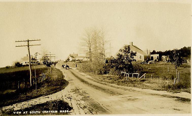 Photo taken around 1910. An an old "saltbox" style Cape Cod home is seen on the right. It is believed Southern Massachusetts Telephone Company served this vicinity on upper Cape as well as most other towns on Cape Cod once upon-a-time before New England Telephone eventually bought their exchanges ...one-by-one. |
