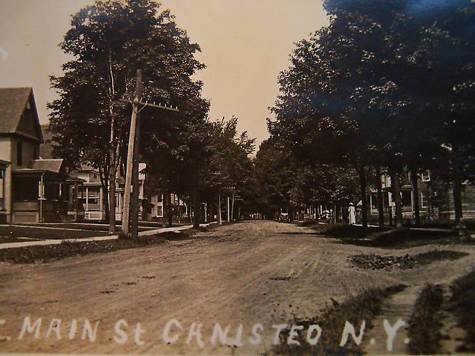 Such crossarm contruction likely continued along this residential New York State street. This allowed for some extended clearance from overhead trees and foliage that otherwise would interfere with telephone circuits. Especially during wet weather when tree branches might have draped into the active wires. |