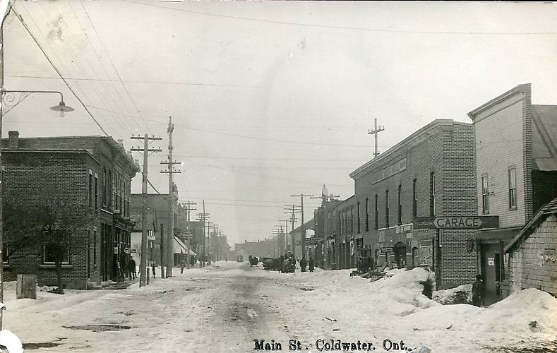 Coldwater, ON, Canada 1919, Snow, Utility Lines, Old Street Light