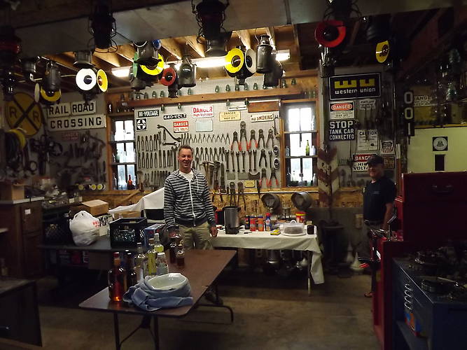 Nathan was getting the early morning coffee and donuts set up inside his working shop/display area.
