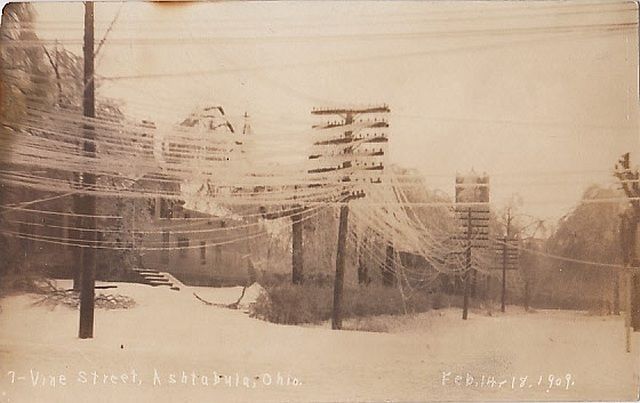Ashtabula, OH 1909 Bad Ice Storm, Sagging Phone Openwire Circuits