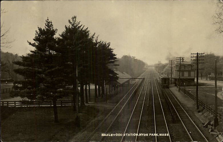 This was a vital North-South Western Union telegraph connection from Boston to points north (Maine and Canada) and south (Providence, New York City and further connections). This line was built with 6-pin construction as you can see. It likely was constructed in the 1890s and had double petticoat glass insulators and iron wire upon it. An extensive line rebuild with new (cedar) poles, 10-pin crossarms and hard-drawn copper wire around 1912 superceded this important circuit with plenty of CD 152 and CD 145 insulators. Some hardware and insulators were re-used, the latter as long as the glass was of the double-petticoat styles (existing or former double-petticoat WU styles). The teen's Western Union pole line stood in place until the early 1960s when the copper lines were removed. Some of the poles remain standing, long-forgotten along distant right-of-way without any purpose in places in suburban towns and with crossarms, deviod of insulators (along this Amtrak right-of-way). |
