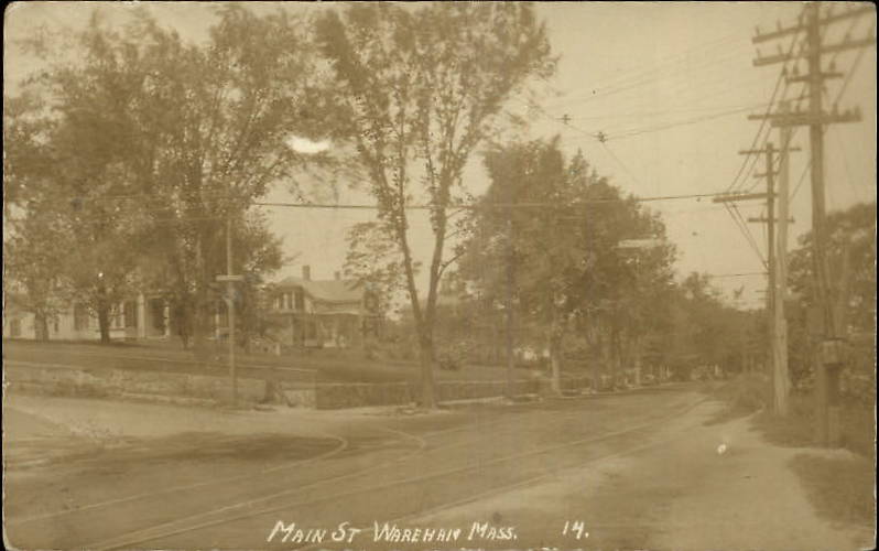 Wareham, MA 1914, Busy Electric, Trolley Pole Lines.