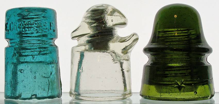 Three pieces as follows -- actual postage additional -- CD 123 E.C.& M.Co. -- aqua -- Great shape! Just the normal nibbling around the base [id=411517917] -- $245 (SOLD) -- CD 128.4 HEMINGRAY // SB -- brass thimble -- no issues! Nice! -- $145 -- CD 162 STAR in a beautiful olive green - flat base flake on the back -- $15 (SOLD) |