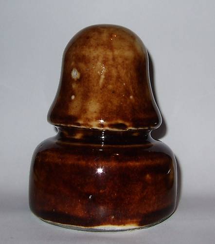 I used my trusty 1971 autographed copy of PORCELAIN INSULATORS GUIDE BOOK by Jack H Tod to identify this critter. I just might keep it. One thing about porcelain insulators you can rotate them 1/3 and see a whole new insulator. I paid $3 for this piece and feel I got 3 different insulators. This is the 1st porcelain, I may keep. It's crude, minty & colorful ... did I say colorful ? I mean brown. This is also the 1st porcelain I could actually indentify correctly ... I think. |