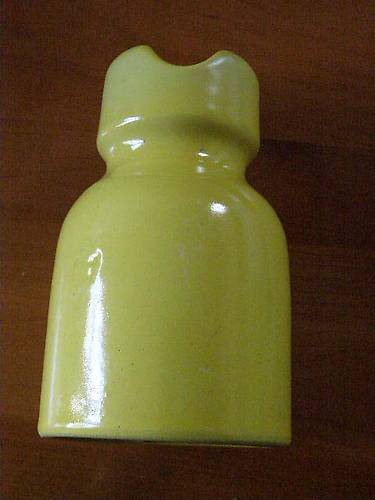 U-1745 Canary yellow insulator from Switzerland. The color is much stronger in person. There is an incuse marking of a striped oval over the words SUISSE over the number 6957. The square metal pin is still inside the pinhole but sawed off. Some scuffing in the back, 2 pings on top.1/4" scuff on the front. $95 postpaid. Check, money order, or PayPal gift mode. Rick Soller, 4086 Blackstone Ave., Gurnee, IL 60031 |