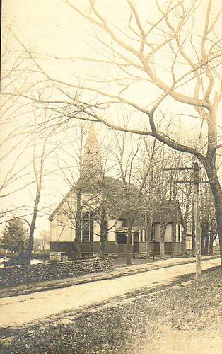 An old pencil-topped telephone open wire pole in this Connecticut community had its upper crossarm cut short a bit giving the overall appearance of it a rather unique and old-time look so that the foliage upon adjacent trees would not interfere with these comm circuits. |