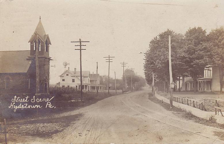 Hydetown, PA c.1915, Interesting Phone Open Wire Construction.