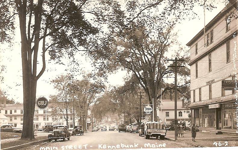 This historic Maine coastal community has had its own electric lighting department since 1894 (Kennebunk Light & Power District) and is one of only a handful of Maine communities served by Public Power. As with the latter... nationwide, Kennebunk's approximately 4,000 customers enjoy electric rates considerably lower compared their neighboring investor-owned customers serving much of the rest of the state. In addition, their smaller size allows the Kennebunk utility to quickly restore outages, etc.. Kennebunk is about half-way between Portland, ME and the State Line in Kittery (altogether about a 45 minute drive along the coast). Photo taken along US 1. Hurricanes during 1938, 1954 and 1960 helped to take most of these tall trees down. |