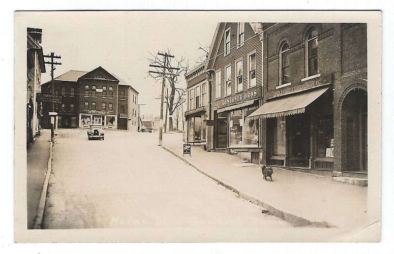 Nice quiet scene in this Maine community's business district. Note dog taking a stroll along the sidewalk on the right ;-)
