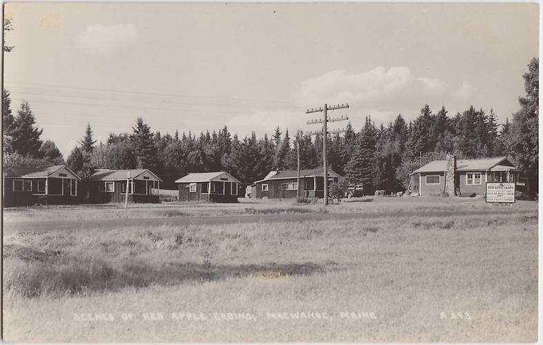 Macwahoc, ME c.1940 Campsite Cabins with Phone Openwire Line