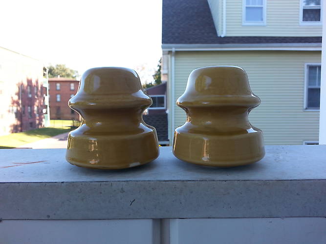 A beautiful pair of Hartford signals that are fairly seldom seen. The piece on the left is factory mint and cruder with small areas of glaze missing on the skirt and misshappen. The piece on the right has a crisper marking and is more uniform in shape and color. Buy for $15 each plus shipping or both for $35 shipped. |