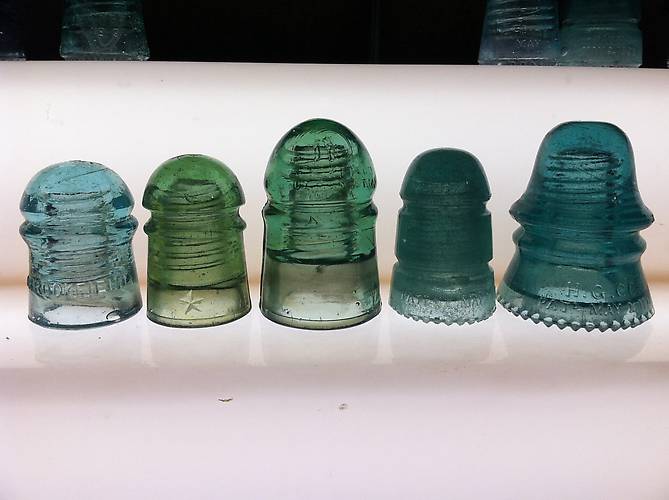 Picked up a box of 32 insulators at a flea market, there was 14 different CDs in the box(all loose in the box) andost were VNM. Here's a few from the box. 2 CD 102s a squity Brookfield, a nice green star, a CD 126.3 Brookfield in light green, a Hemingray 11 full of bubbles, snow, some amber and a big bubble behind the patent date and a fizzy CD 151 there was also a HEMI. 40 with amber, a CD 120, a milky HEMI 12 and 9 |