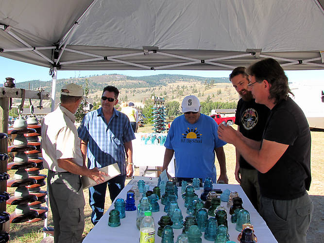 Prepared for rain or sun, Tom made sure to make room in the car for his canopy cover, and it sure came in handy for the 4 days of hot sunny weather. Here Tom, Dwayne Anthony, Gil Hedges, and Russ & Ryan Paton catch a little temporary reprieve from the hot sun |