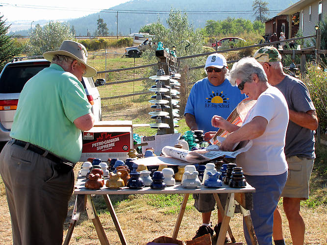 Carol and Al Fix drove all the way from upstate New York to attend this year's show. Here she's wrapping up a piece of blue porcelain for Gil to haul back to Seattle, while (past NIA president) Lou Hall looks on