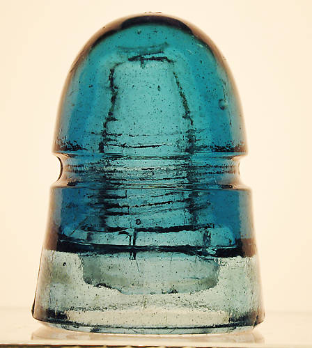 Good morning everyone. Offered for sale today is a NM (I'm being conservative about condition) blue American Insulator Co. CD 145 beehive, base embossed, the two-date version with the 1881 and 1883 patent dates. Whatever color you want to call it, it is not aqua. It is a quite vivid blue, likely quite similar to Hemingray blue. For those who collect American beehives, this would be a nice one for your collection as it contrasts nicely with all the aquas, greens, olives and ambers. I found this in a local antique store and was quite surprised to find this insulator in Oregon. I talked with a knowledgable collecting friend of mine who explained to me that these Americans were indeed used on the Southern Pacific line that runs between Oregon and California. Judging from the diesel smoke I had to remove from the piece, I'd say that is highly likely. Who'd have thought the railroad here would have ordered insulators from Boston, or anyone besides Hemingray or Brookfield, which were far more common? Anyway, I checked here on ICON and see that these blue Americans just aren't offered for sale often, nor do I see them too often at shows out west here. Damage report is minimal. The worst is a 3/8" x 3/16" shallow flake off the base next to "1883." There are a couple light dome scuffs and several "lehr kisses," all on one side of the insulator, and a small curved scratch affiliated with one of those kisses. I mention these only for accuracy -- none of the flaws are detracting. Several bubbles and an underpoured inner skirt, and a distorted thread cavity add character. How about $85 and that includes the shipping cost by USPS Priority mail? Okay, no takers -- how about $60? And that includes shipping. |