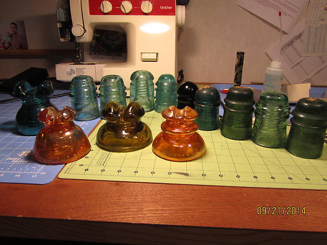 Really exciting finds as of late. There is an unlisted toll. It is a crown embossed AM TEL & TEL with a dome number. I have added two more pictures to show it. Notice there is a really light am tel and tel green toll. My first. Also another crown embossed toll. A straight sided CD 127 and several others. All of these insulators where found at antique malls and a garage sale. Thanks for looking. |