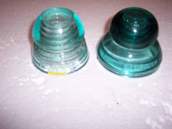 Up for sale are 2 halves from a Two Piece Transposition: Hemingray CD 191 [020] in aqua in good shape A.T. & T. Co. CD 190[020] in ice green aqua with one very small chip Looking to sell the above transposition's OR use them in a trade for the following: AM. TEL. & TEL. Co. Bottom CD 190[010] in amber green Two Piece Transposition, Bottom CD 190[020] in milky aqua Thanks for looking Happy Trails Michael |