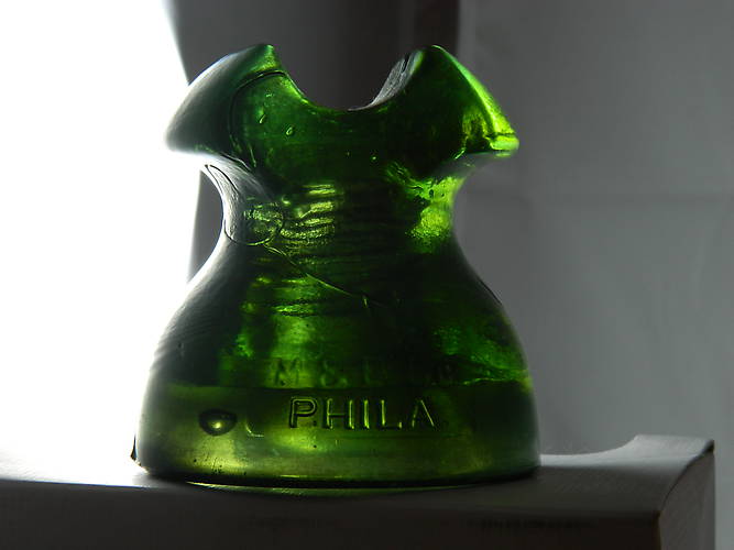 Found this, filthy and with cob webs all over it, in an outdoor shed at one of our favorite antique shops. I didn't know what it was when I bought it. Cleaned up nicely, but it's kind of dull dark green when the light isn't shining through it, and I'm not sure if I can polish it to make it look a little better. |