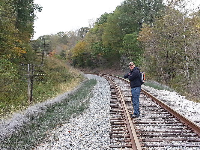 Just a beautiful Fall day on the line! Mackenzie is taking a pause before we hike up the hill.