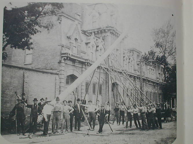 No insulators, but I thought this was a great illustration of how things used to happen. As quoted from the book Toronto, The Place of Meeting : "Illuminating Toronto required much man and horse power. Here over 20 linemen labour to sink one of the 60' power poles on Mutual Street in July 1910. AO S17362 " Now it takes about 4 men, 2 trucks and a morning to get a several poles changed out. Good collecting ............. Robin |