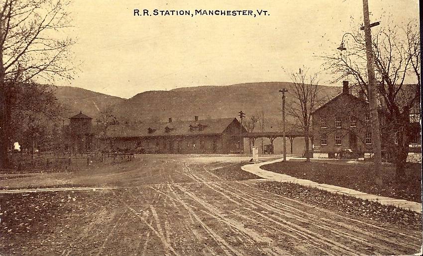 Manchester, VT c.1910, Railroad Station, Gooseneck Street Light
