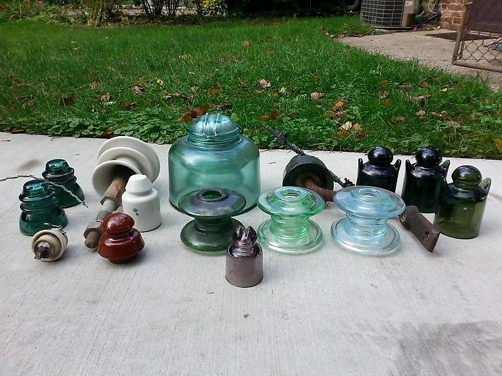 Last summer I spent two weeks traveling in Europe (Holland, France, Spain, Portugal, and Germany). When traveling I was able to meet up with two collectors. The glass insulators on the right I got in France. The large fog bowl is my favorite! The two glass and four porcelain insulators on the left I got in Portugal. Had a great trip and was able to meet up with two great collectors! |