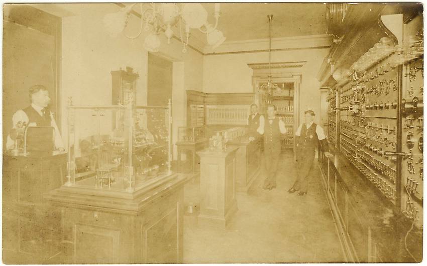Really cool equipment and most of it is readily exposed. The exception was the master telegraph recorder seen on the left in its glass case. These had many brass gears and fancy parts, lightbulbs inside and a reel that rolled out the box number code on a paper strip. One can only imagine the insulators from our dreams that connected from this locate to the openwire fire alarm call-box network that was strung up and down the many streets of this Oregon city ;-) |