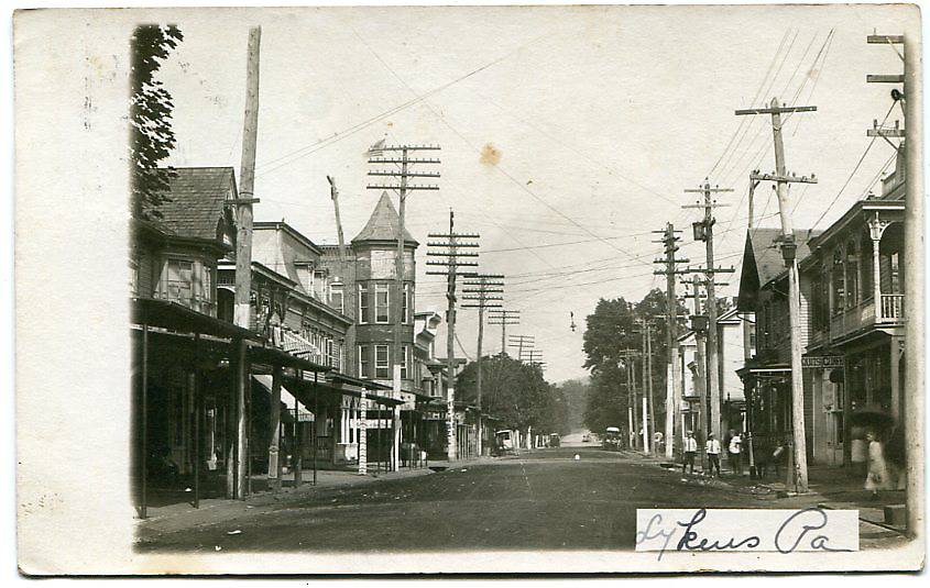 Telephone openwire circuits were the rule along the ten-pin, four-crossarm lead that we see along the left. On the right predominantly are electric distribution circuits with some really neat looking old cast iron transformers connected to them for area lighting customers. |