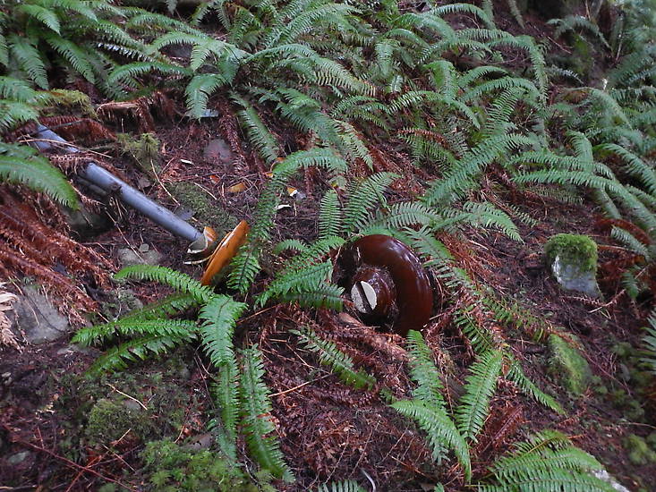 As found, M-4422 Thomas. The pole has compleatly decomposed leaving only the insulators on their pins .