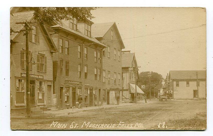 Primary (higher voltage, typically 1,100 or 2,200 volts in those days) wires ran along the upper crossarm here with the series circuit for local incandescent street lights. One of the latter of the gooseneck radial wave design can be seen on the pole on the far left. Circuits for customers ran on the lower crossarm and at about 110 volts. |