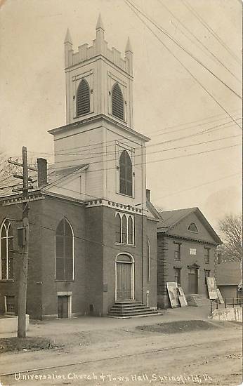 Electric lighting service lines ran atop this pole in this Vermont community. Beneath on the longer crossarm are telephone circuits connecting to a wooden junction box. The latter were commonly used in the early days to combine the openwire pairs to paired-covered cable; frequently leading to the telephone company central office immediately nearby. The terminal blocks inside of these boxes also allowed technicians to perform circuit testing. |