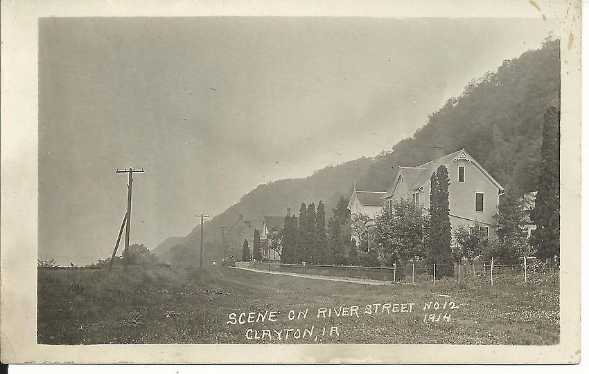 Rural line with either electric lighting or phone circuits (or maybe both) along this hillside unpaved section of roadway in Iowa a century ago.