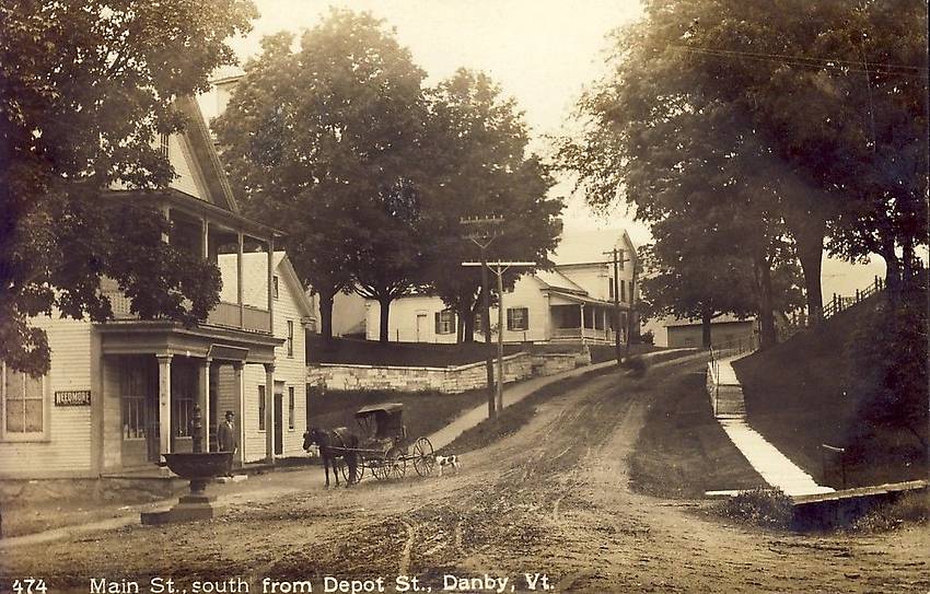 Early lines built by New England Telephone & Telegraph Company requiring more than 4 wires employed six-pin crossarms opposed to side pins. These arms date back to the mid to late 1880s through around 1910 and they were mounted to their poles via two diagionally spaced lag screws, mostly with crossarm braces also supporting them (I'd say after the early 1890s). Construction after around 1910 employed ten-pin crossarms as we see within this Vermont village. A single through-bolt affixed them to their new poles, using the same-style (often re-used) crossarm braces. Most of the latter were 30 inches in length and were placed over the crossarm opposed to the inside of them, pararell to the pole itself. NET&T used the above construction practice for decades. At some point they started to use creosoted pins and crossarms...designed to last virtually forever. Click "Next" for a closer view of this pole line changeover. |