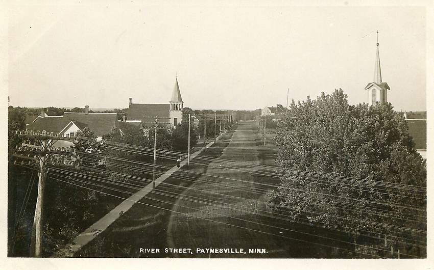 Paynesville, MN c.1910 Tightly Strung 3-Crossarm Phone Wire Line