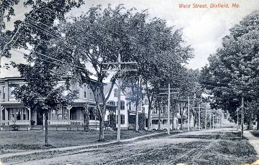 Dixfield, ME c.1910, Phone Openwire Line, Old Homes, Unpaved Road