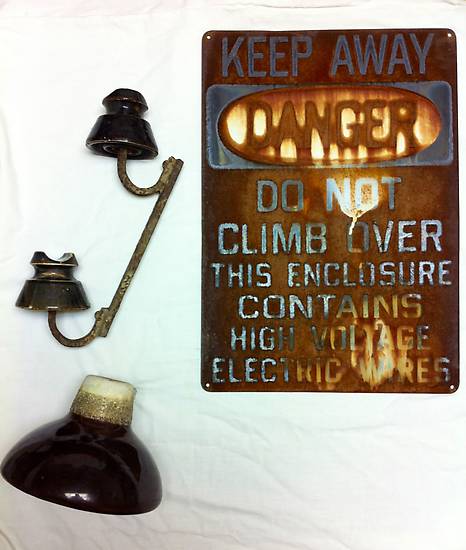 Some stuff I found yesterday. The sign is pretty cool even if it's had better days. The odd piece on the bottom left looks like it could have been a suspension to me but it has a lead threaded pinhole inside.