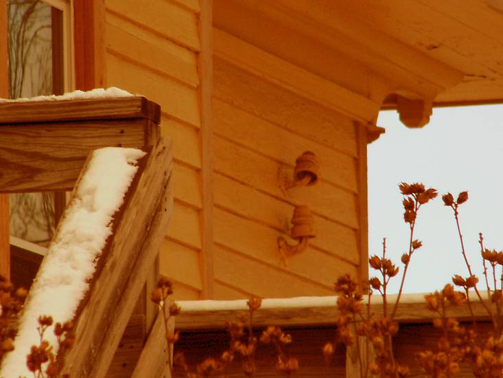 Last week I was on my way to the dentist over in the City of Hudson, N.Y. when I spotted these two signals on te side of a house. I've gone past these countless times prior to that day last week but never spotted them. Must have been more worried about wrecking the car then thinking of insulators in the past being they are located on a pretty busy street. The lower is a CD 162 and te upper is a CD 162. Hard to tell from this pic but the 162 does have SDP's. Think the top insulator also has them. You sould be able to see better if you zoom in on my next pic. This pic is taken from the rear side of the house. The next pic will be from the front where you can see the yellow amber paint was peeling. |