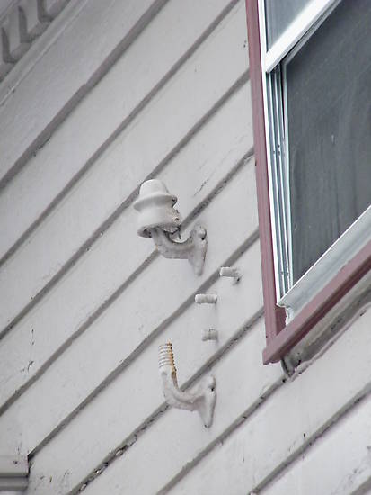 I knew this insulator was on the side of a small house was there for about five years. Just dudn't have my camera when I was in that area. I originally spotted it driving down an alley between blocks. Can't be sure what it is but I'd guess CD 164 glass. The paint looks more gray in my pic but the actual color was more a light hot chocolate looking color. |