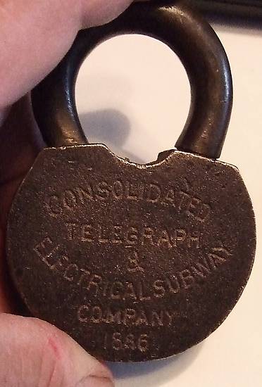 dated 1886 brass "figure 8" lock w/key. I found this lock with the matching key in an Antique Mall today. So far the best find of 2015 ....