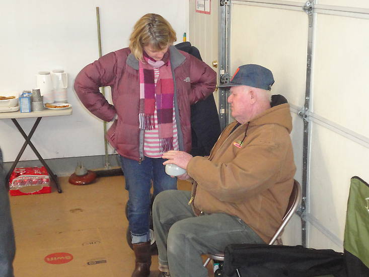 Beat the Winter Blahs swap meet 2015, Tom Nugent explaining the finer points of the workings of a insulator to?