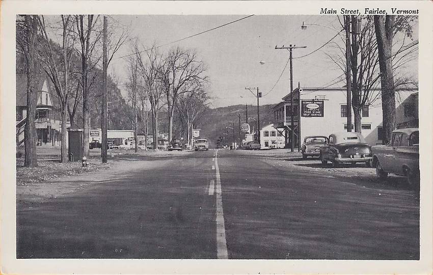 Fairlee, VT c.1955 Downtown, Electric Lines, Old Cars, Stores, Americana