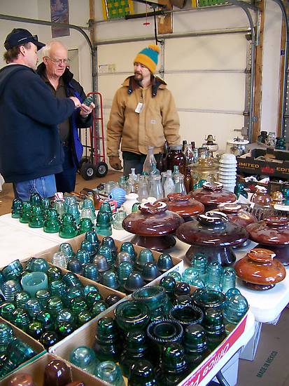 Mark Gilmore, host Arlen Rienstra and Andrew Gibson look over an auction item. Andrew had the honors of this years long distance traveler with his 11 hr. trip from the fingerlakes region of New York.