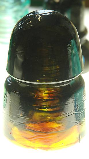 Last of the insulator portraits - this old Brookfield can be seen on Jay Dondorf's light table in a previous picture. Here it is, up close and personal. This one also went home with Mark and Elaine. This picture is another HDR (High Dynamic Range) image generated by post-processing several images taken at different EVs (Exposure Values) and combining them into a single image. |