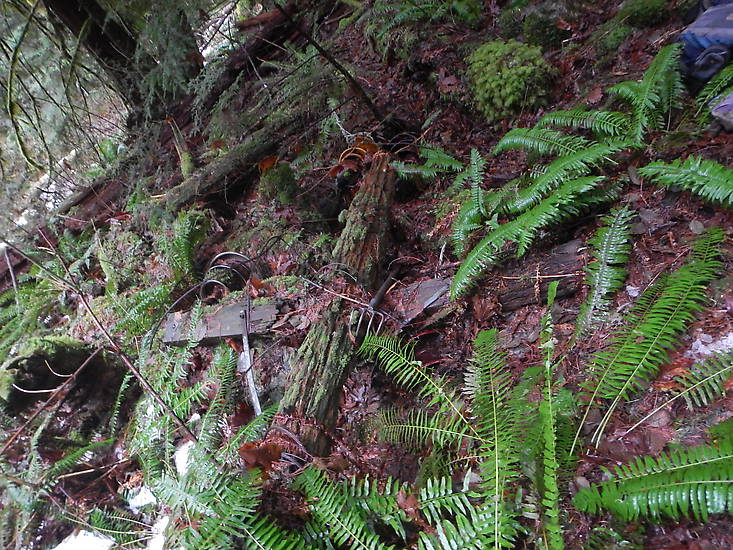 Sometimes it really pays to look carefully ... example:note my personal cover photo of a rotted old pole with numerous damaged multiparts on it ... There is only one original unit ... The damaged yellow one on top. The rest are 1930's replacements ... big deal you might say. Well... what happened to the other 3 multiparts that were first installed on this pole in 1906? Long gone I'd guess because few big things survive 80 years on the ground especially when there are numerous convenient rocky outcrops and a rock filled creek bed to land big multiparts in nearby ... Anyhow, Yesterday I went back to the line up to recover the yellow skirts from the top of this pole that I had left several weeks before on a previous hunt and asked myself the same question ... So assuming the pole was standing and the lineman were changing out damaged insulators, where might they end up? ..." Obviously on the rocks In the creek next to the pole" I thought to myself ...!? OK, I checked and there was some porcelain and an old pin or two in the creek but wait what's that chunk of pipe buried in the dirt and brush at the base this old rotten fallen pole ...lets look around and see what we can find ..[id=427643351] |