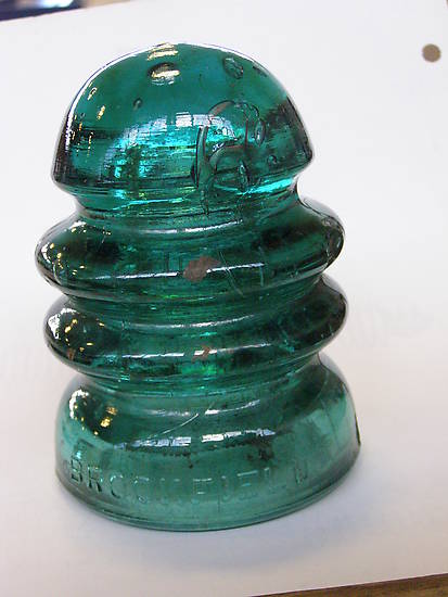 A lineman for the South Shore Interurban was selling his railroad stuff including insulators on January 31, 2015 in La Porte, IN. That was the same day as the Crown Point, IN swap meet for the Greater Chicago Insulator club and I ended up going to the auction. I'm sure I overpaid for this piece but I liked the big and open bubble in the dome. There is a hard to see chip on the wire ridge. |