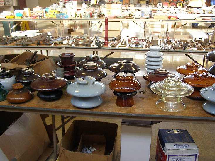 A lineman for the South Shore Interurban was selling his railroad stuff including insulators on January 31, 2015 in La Porte, IN. That was the same day as the Crown Point, IN swap meet for the Greater Chicago Insulator club and I ended up going to the auction. Line posts, multiparts, and large power pieces. The blue JD went for almost $100. I think the Pyrex piece had the smaller "foreign" top to it. |
