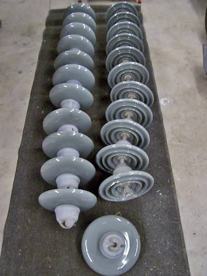 On another excursion pulled these light gray 10" suspensions out of the same roll off a week ago. They have General Electric socket caps with a 1962, 25000 lb. marking on porcelain disc.
