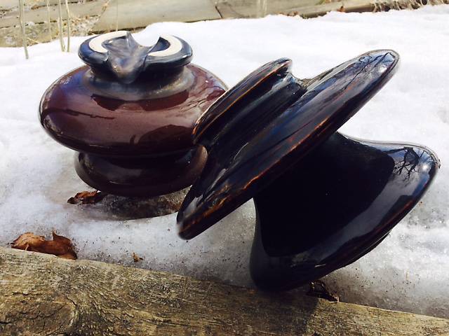 This line is being dismantled and has a lot of newer Chance and some of the original M2614A's shown in the picture. Most are damaged from removal, few metal tops coming down near the Stonington Borough. Dismantling started last month at Mystic end and continues to Stonington about 6 miles away.. |