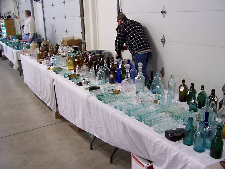 At today's show there was a good mix of Insulators and bottles. Here Kelly Dzial had two tables of bottles for sale.